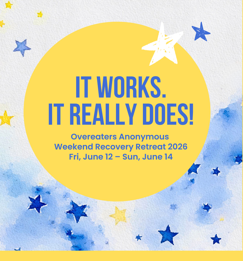 Our primary purpose is to abstain from compulsive eating and compulsive food behaviors and to carry the message of recovery through the Twelve Steps of OA to those who still suffer.